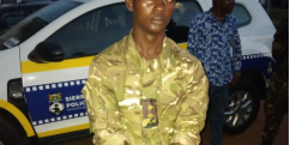 The suspect, identified as David Abdul Kamara, a resident of #232 Bai Bureh Road, Congo Water, Wellington, Freetown, was detained while dressed in full military uniform bearing the rank of lieutenant. However, his attempt to pass as a legitimate officer was quickly foiled by the experienced Lieutenant Swarray.