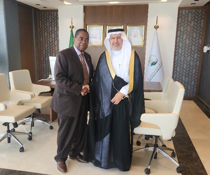 In his determination to promote Economic Diplomacy, focusing on trade opportunities, foreign direct investment, tourism, and promoting Sierra Leone’s image in the Kingdom, Sierra Leone’s Ambassador to Saudi Arabia, H. E Mohammed S. Barrie, on Tuesday, 15th July 2025, paid a courtesy call on Dr. Abdullah Bin Abdulaziz Al Rabeeah, Advisor at the Royal Court and Supervisor General of the King Salman Humanitarian Aid and Relief Center (KSRelief).